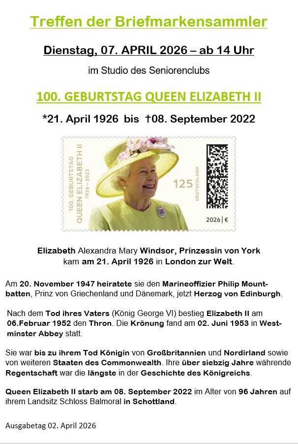1. Dienstag im Monat, ab 14 Uhr, nächster Termin: 7. April 2026 |