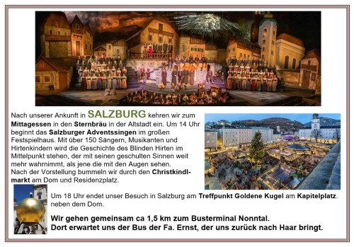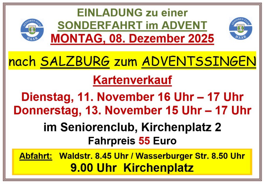 Von April bis Oktober bietet der Seniorenclub einmal monatlich eine Kulturfahrt an. Es werden interessante Ziele in unserer weiteren Umgebung angefahren.